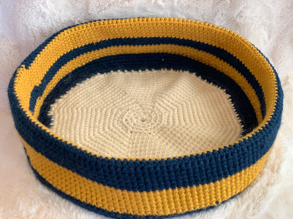 Welcome! Included in my collection below are the beds that can be purchased as is. If you prefer to choose your own design and color, feel free to browse the tab in the top menu. There's a variety of different options that will allow you to build the bed that suits your own style! If you're interested in placing an order, please email me at knottycatscrochet@gmail.com or message the Knotty Cats Crochet Facebook page. Thank you!